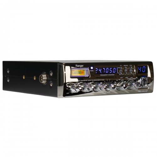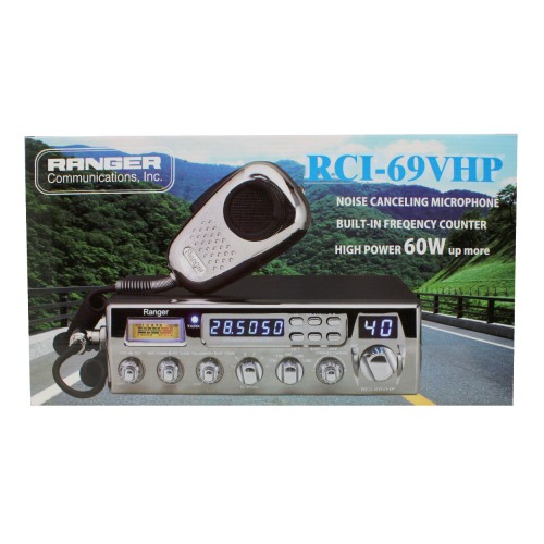 The Ranger RCI69VHP comes fully loaded with features and as much power as you can get away with without routing power directly from your battery. It's all mode so you can use it on AM, FM, and upper and lower single side band, and includes a 6 digit frequency counter and clarifier so it's easy to get tuned in. The dark chrome bezel looks great with the blue LED lights, but the best part is you also get the Ranger SRA198C chrome noise cancelling mic that we're really fond of. Those mics alone go for about $50.